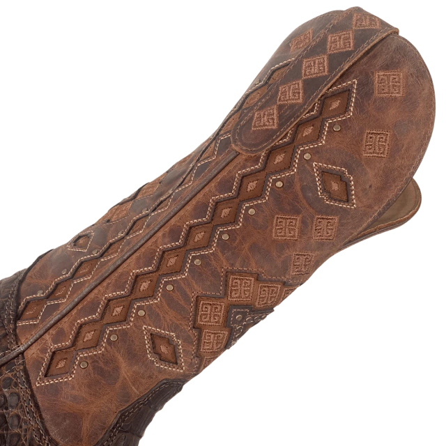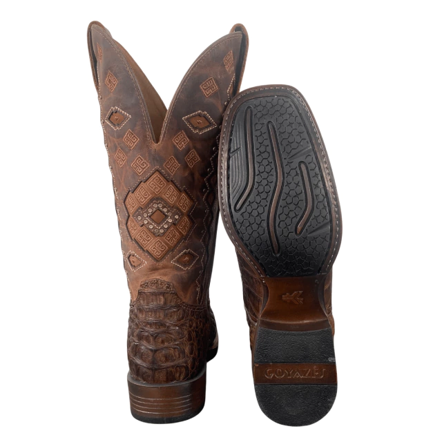 Descubra a sofisticação do estilo country com a Bota Goyazes Feminina Jacaré Dallas 256408-JP. Confeccionada em couro legítimo Jacaré Tabaco, ela traz o exclusivo Couro Dallas Furta Cor, que garante um visual autêntico e moderno.