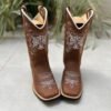 Bota Texana Bordado Cruz Branca Couro Marrom fabricada toda com couro 100% legítimo.