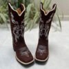 Bota Texana Bordado Flores Branca Couro Nobuck Marrom fabricada toda com couro 100% legítimo.