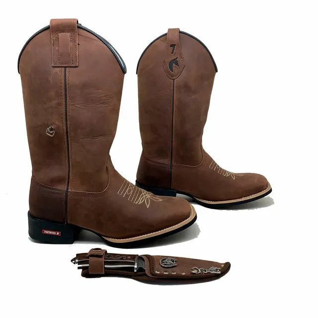 BotaFaca Econômica – Couro Crazy Horse Nescau | Bordados Bege