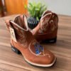Botina Cano Médio Bárbara – Couro Horse Telha/ Bordado Ramos Bege e Padroeira