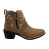 O design desta botina destaca-se pelo bico fino e salto de aproximadamente 5 cm, conferindo um visual moderno e feminino. O bordado de flores adiciona um toque delicado e exclusivo, tornando o calçado ainda mais charmoso. Para maior praticidade, possui zíper em ambos os lados, facilitando o calce.