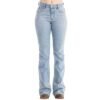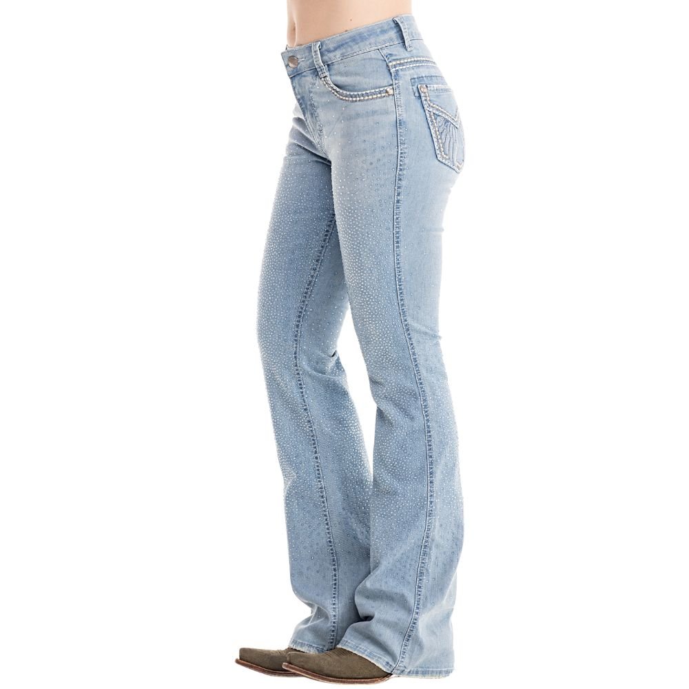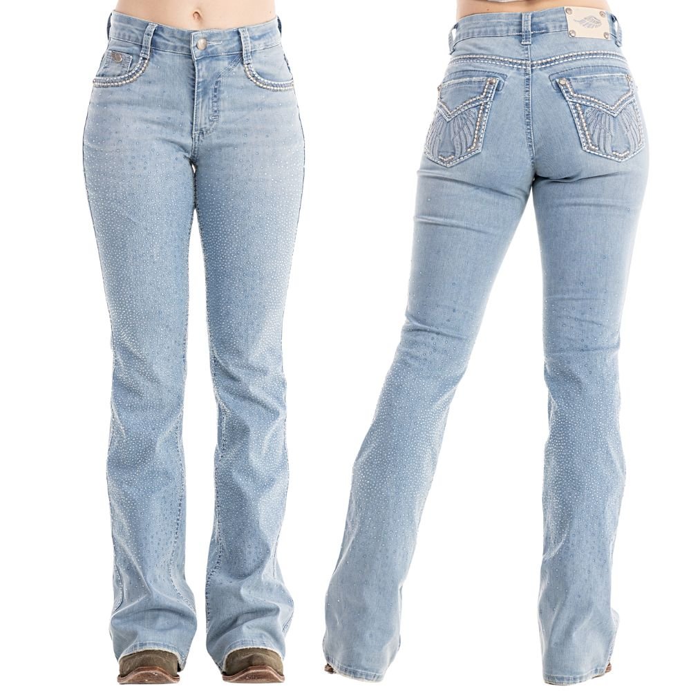 Calça Feminina Zenz Western Jeans Farmland Azul Claro Flare Com Brilho Total