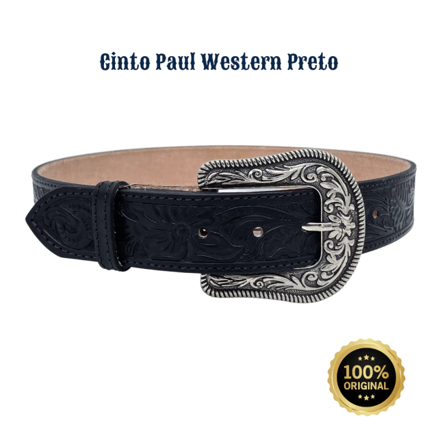 O Cinto Paul Western é confeccionado em couros legítimos de boi, com um elegante design entalhado na sofisticada cor preto. Este cinto não apenas realça seu visual, mas também oferece durabilidade e resistência.