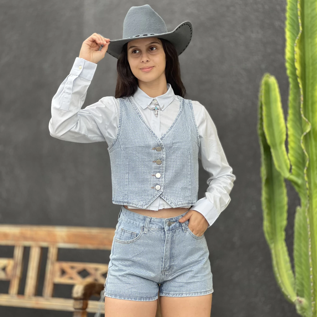 Conjunto B&C Shorts e Colete Lola Shine Delave