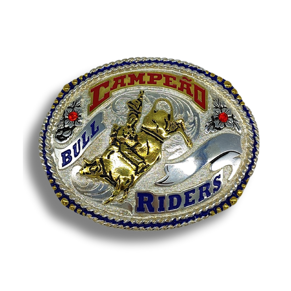 Fivela Master Bulls 566Essa fivela é pura elegância! Com cor prata e detalhes vibrantes em azul e dourado, ela se destaca com strass rubi que trazem um charme todo especial. Ideal para quem quer dar um toque sofisticado ao visual. Feita com materiais de qualidade, essa fivela é perfeita para complementar seu cinto e arrasar em qualquer ocasião.Tamanho da Fivela: 14,5 cm de largura x 11 cm de alturaNão perca a chance de levar esse acessório incrível! Para dúvidas ou atendimento personalizado, clique no ícone do “?” e fale com uma de nossas consultoras.