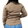 - Destaques: Gola alta, punhos ajustáveis, cor marrom sólida