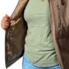Seu design marrom sólido garante um visual moderno e versátil. A gola alta protege do vento, enquanto as mangas compridas possuem punhos de velcro ajustáveis para maior praticidade. O fecho de zíper frontal completo facilita o vestir e traz segurança ao uso.