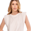 A Regata com Ombro Alongado na Cor Creme é a escolha perfeita para quem busca estilo e sofisticação. Com uma gola decorada por um mix de aplicações de tachinhas e pedrarias, ela traz um toque de elegância ao seu look.