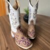 Texana Anelise – Couro Floatter Branco e Nobuck Areia/Bordado Flores e Cavalo Lilás