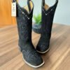 Texana Geovana – Couro Nobuck Preto/Bordado Ramos Preto com Metais